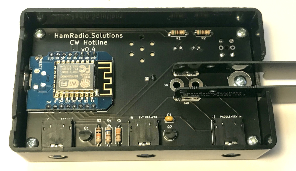 Ham Radio Solutions is pleased to offer CW Hotline, a WiFi connected CW tool. CW Hotline was designed to provide a way to key a remote radio station in CW mode, but can be also used as a private Morse code link to friends. Think “The Bat Phone” for CW. It is available with either a built in straight key or paddles, or neither if only external keys will be used. Once it is configured with the local WiFi information, just power up, it will link with selected peers and be ready to send and receive.